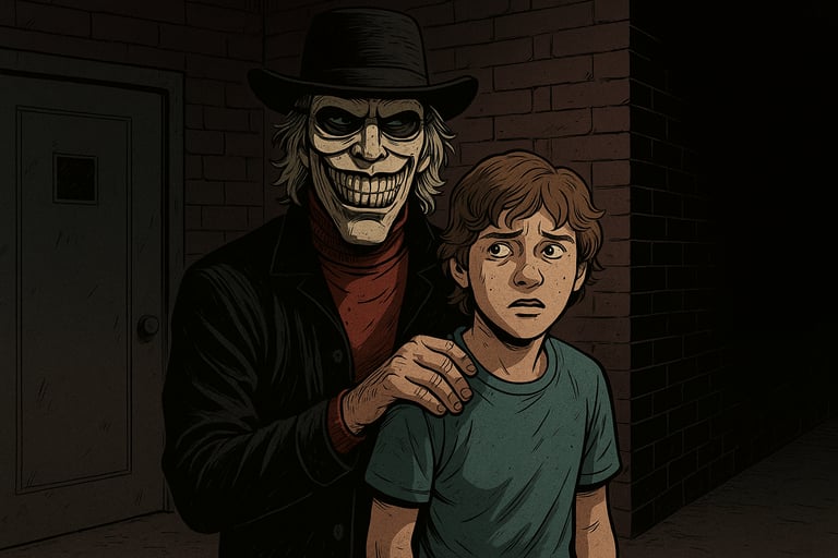 Finney, o jovem sequestrado por um assassino conhecido como The Grabber (interpretado magistralmente por Ethan Hawke), é forçado a encarar o medo e a violência de forma quase simbólica — e é nesse confronto que o terror se torna emocional.