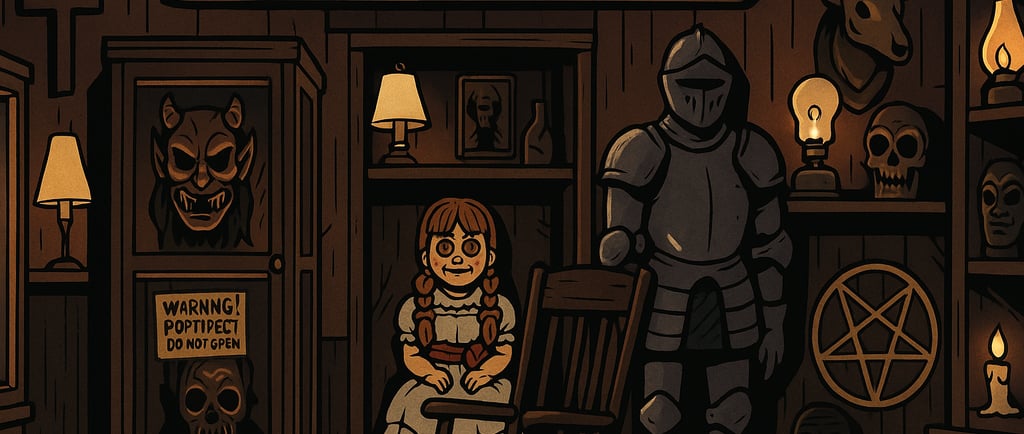 Hoje um ícone do terror moderno, Annabelle começou como uma simples boneca de pano Raggedy Ann. Nos anos 70, duas estudantes alegaram que o brinquedo estava possuído e exibia comportamentos assustadores, como mudar de posição sozinha e deixar mensagens ameaçadoras. Os Warrens assumiram o caso, trancando Annabelle em uma caixa de vidro em seu museu oculto. O mito se tornou tão popular que inspirou filmes próprios dentro do universo Invocação do Mal.